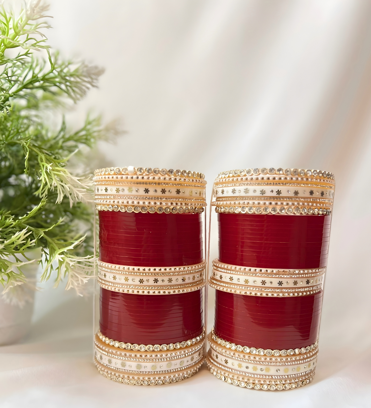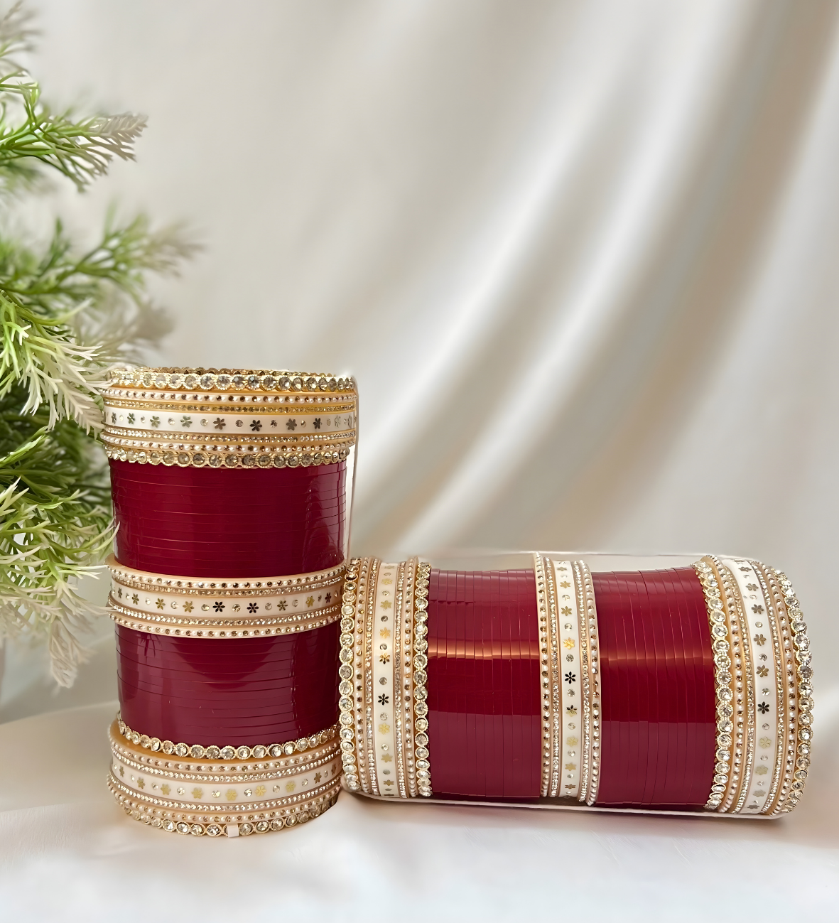Designed for weddings and bridal rituals, this chuda set pairs beautifully with lehengas, sarees, and other traditional ensembles. The refined detailing along the borders adds a graceful finish, making it suitable for extended wear during wedding functions and celebrations.